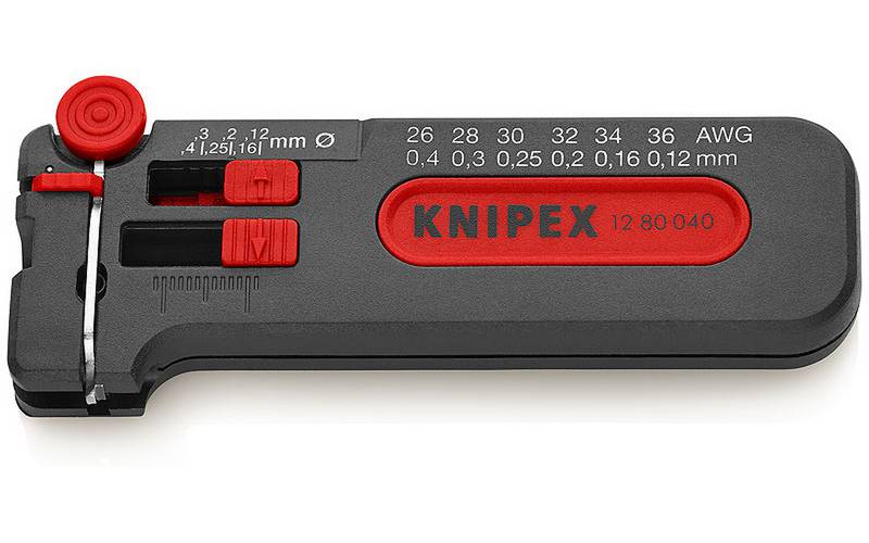 Precis avskalning, stegvis justering för ledardiameter. Med trådavbitare. Inställbart längdstopp (4,0–15,0 mm). Med låsanordning. 190532911 – 190532911 – För tunna kopparledare (diameter 0.3–1.0 mm). 190541003 – 190541003 – För tunna kopparledare (diameter 0.12–0.4 mm).