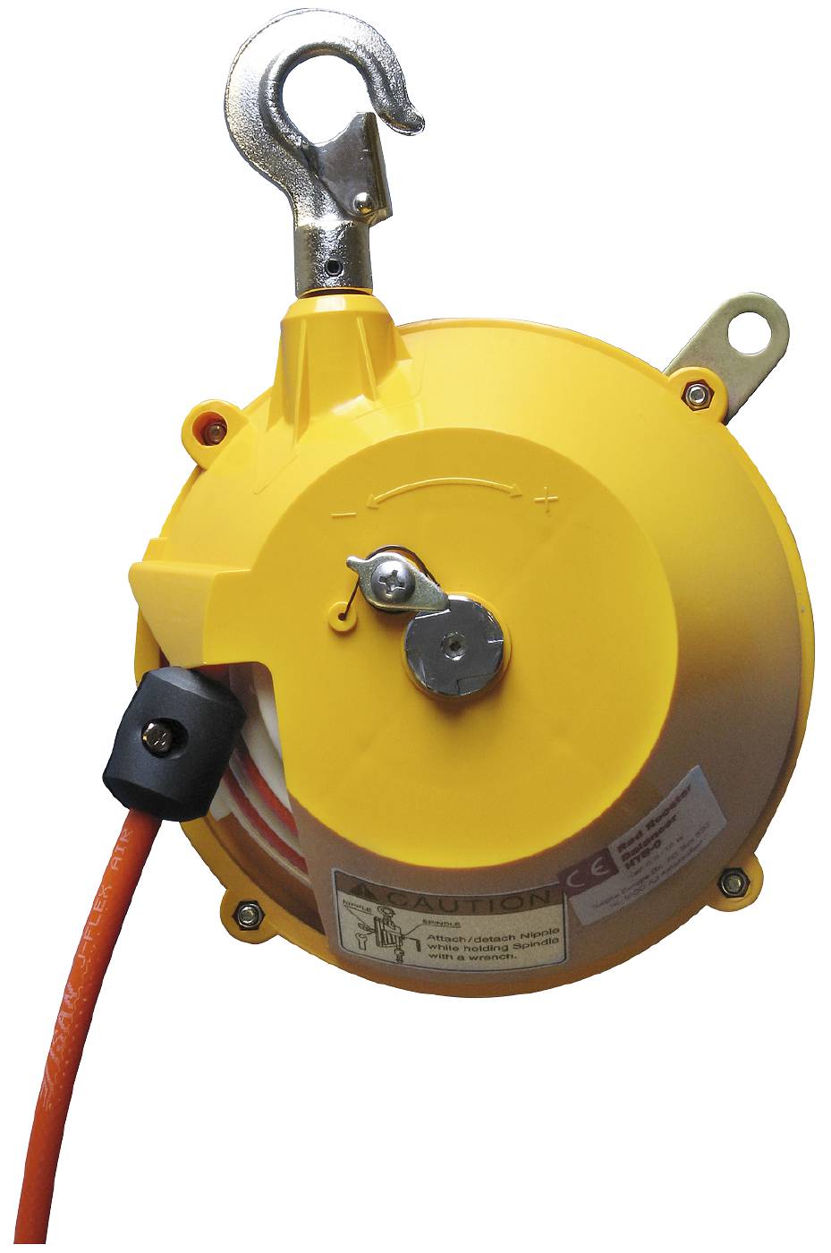 För upphängning och drift av pneumatiska verktyg genom den integrerade slangen. Lyftkraften är enkelt justerbar beroende på vikt av verktyg, levereras inklusive slangstopp.