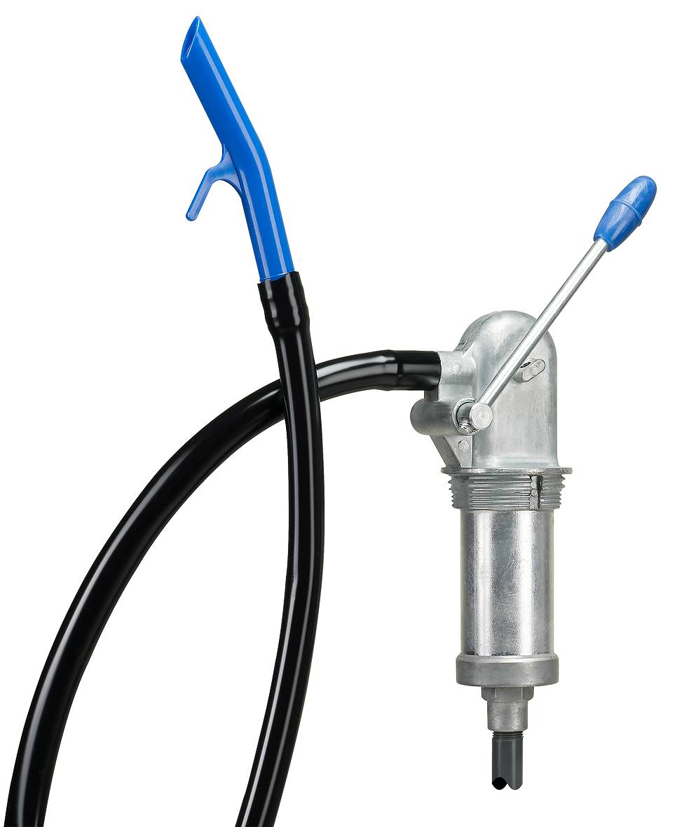 Standardversion. För lättflytande vätskor som fotogen, olja (upp till SAE 50), brännoljor m.m. Ej för vatten eller kemikalier (natriumhydroxid). Hävarmspump med plaströr. Anslutningsmutter med M 64×4 samt 2” G (R) gänga. Automatisk genomgångsventil. Med svart PVSC-slang. Passar till 60, 200 och 220 liters fat.