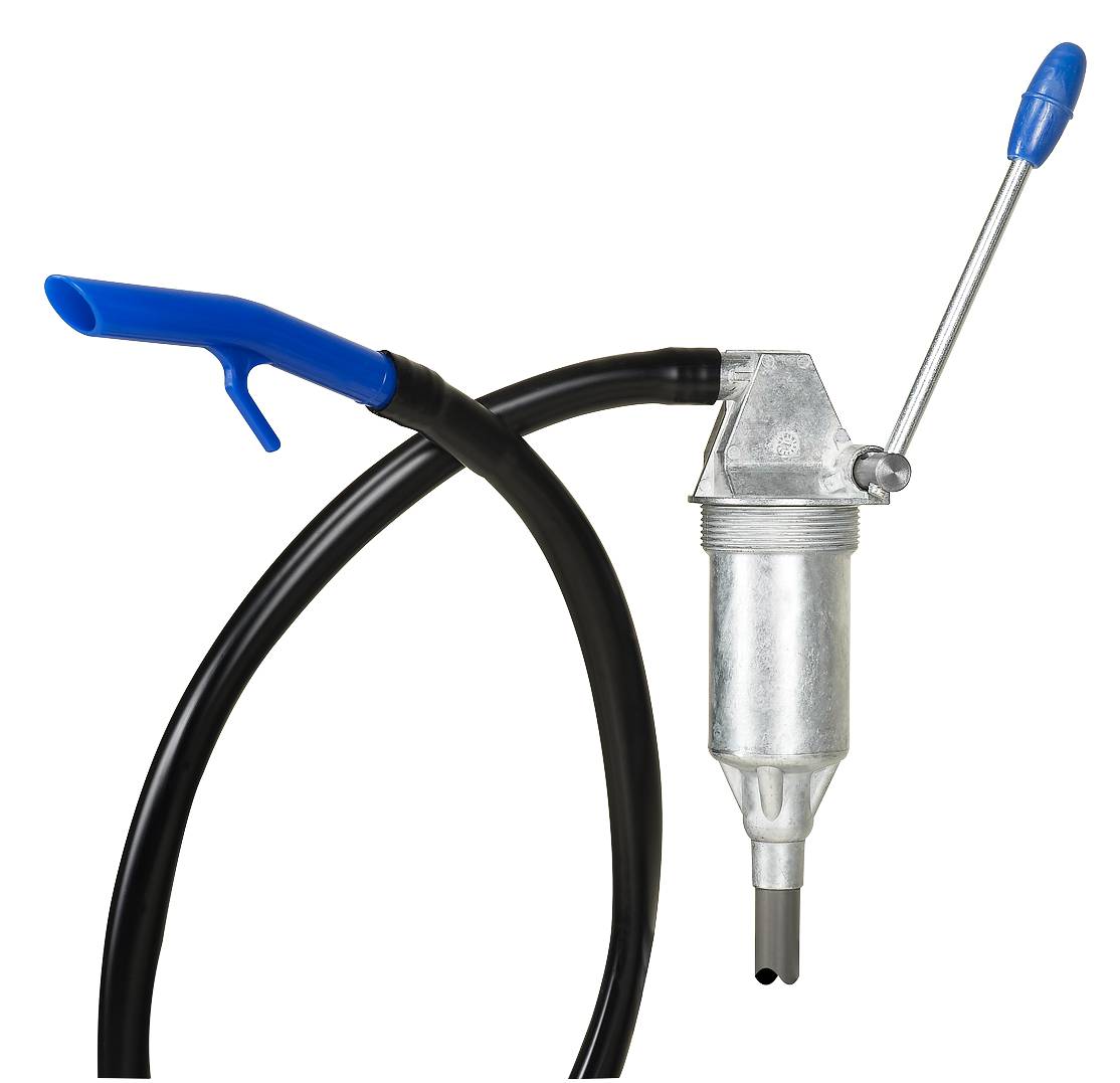 Standardversion. För smörj- och brännoljor (upp till SAE 50). Ej för vatten eller kemikalier. Hävarmspump med anslutningsmutter med M64×4 samt G (R) 2” gänga. Automatisk genomgångsventil. Med svart PVC-slang.