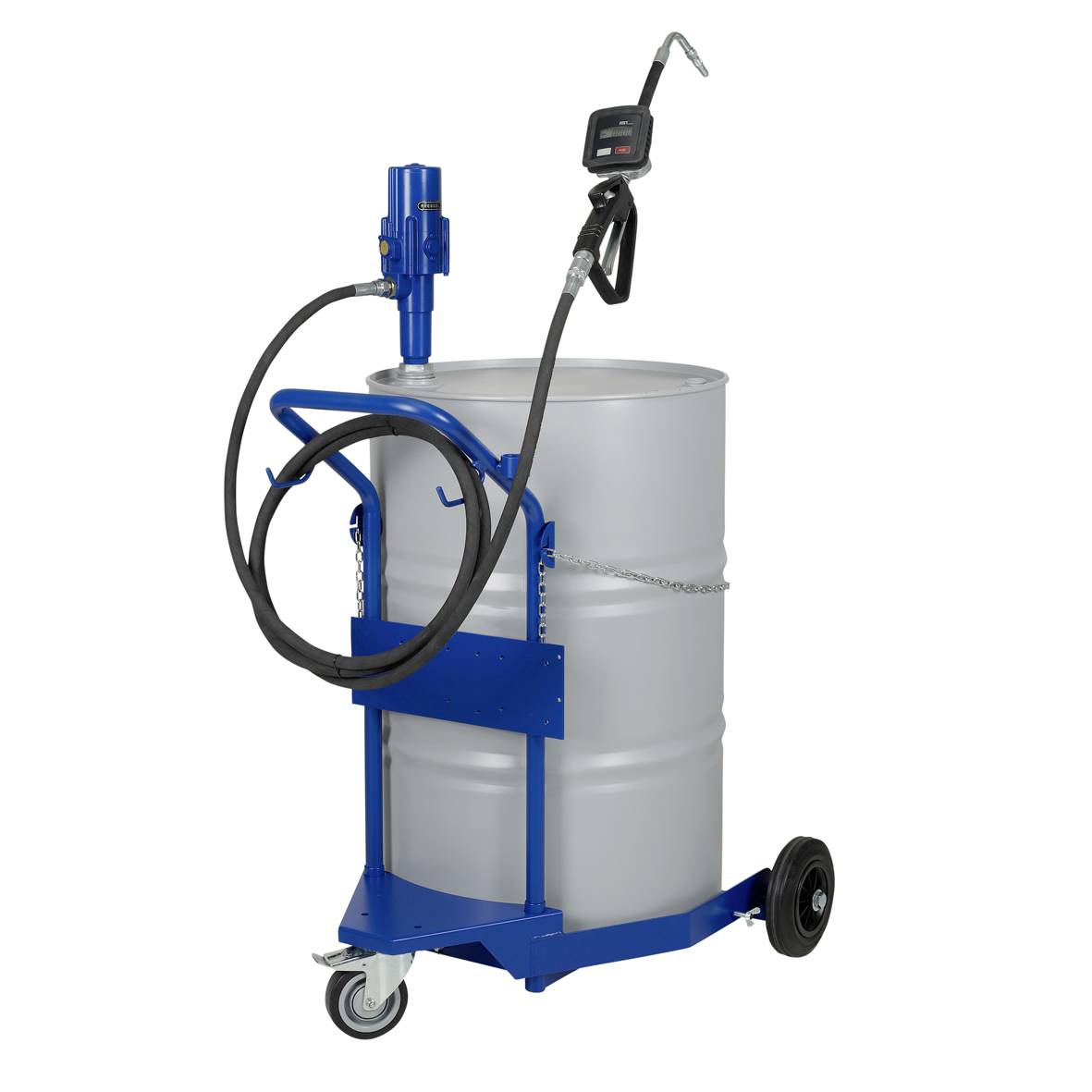 Pumpar 1061-0103 (ansl.G 3/4”), 1061-0202, -0236, -0244, -0251, -0301 (ansl. G 1/2”). 1061-0103, -0301, levereras komplett med tryckluftsanslutning, sugrör, anslutningsmutter för oljefat G (R) 2”, 4 m slang med anslutningsmutter, samt pistolhandtag med vridled. 1061-0236, -0244, -0251 levereras koplett med tryckluftsanslutning, sugrör, anslutningsmutter för oljefat G (R) 2”, 4 m slang, med anslutningsmutter, samt handflödesmätare digital, antidroppmunstycke samt vridled. 1061-0236 leveras även med automatiskt stängande handflödesmätare. 1061-0251 levereras även med fatvagn 200 kg.