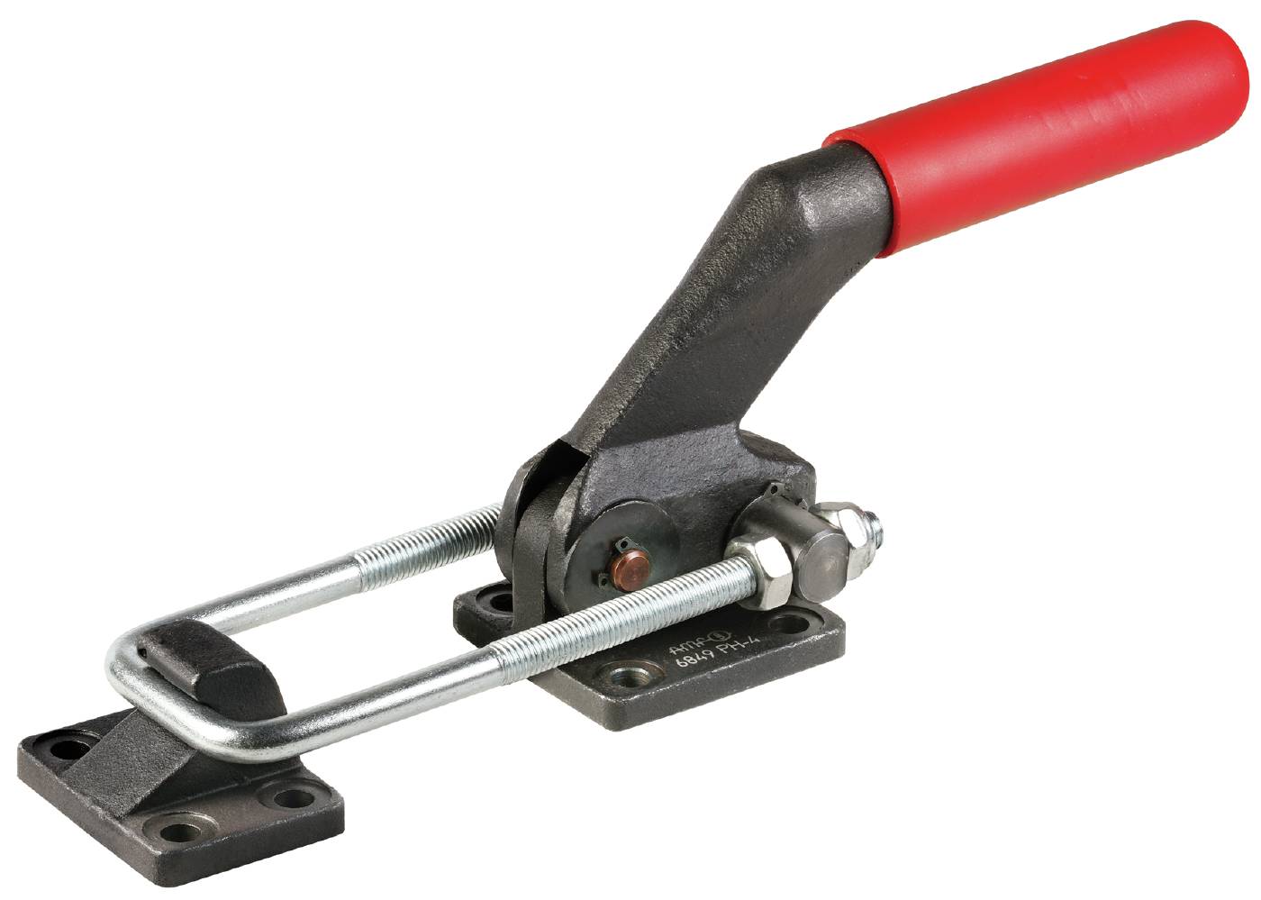 Kraftig förslutningsspännare med horisontell spännriktning. I aducergjutgods med mothåll i stålgjutgods. Brunerad med bygel i seghärdat stål. Komplett med mothåll.