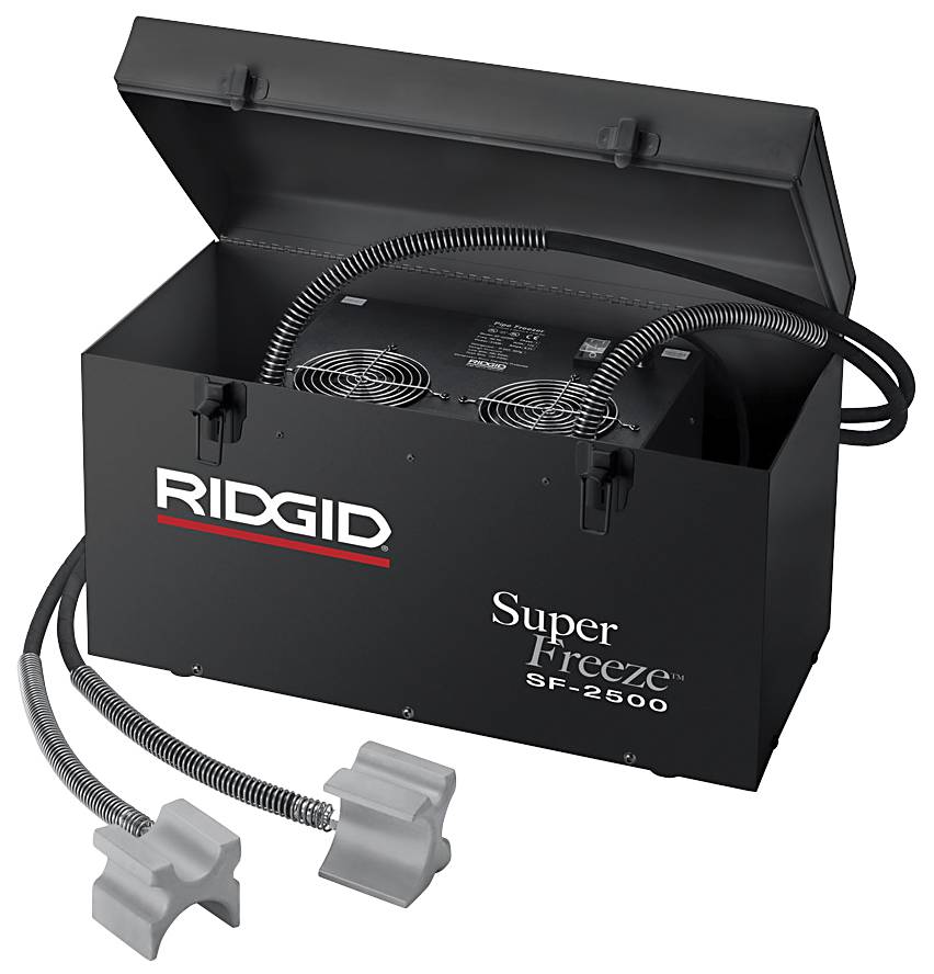 Elektrisk frysmaskin. Skapar en säker ispropp i vattenledningar. En snabb och tillförlitlig metod vid reparationsarbeten utan att behöva släppa ut vattnet i ett värmesystem. Vattnet fryses på några minuter beroende på dimension m.m. Reparationsarbetet kan utföras några centimeter från frysstället. CFC-fri. Övervakning behövs ej under frysningstiden. Fastmonterad i transportlåda. Med 2 frysslangar av gummi, elektrisk anslutningskabel med stickpropp.