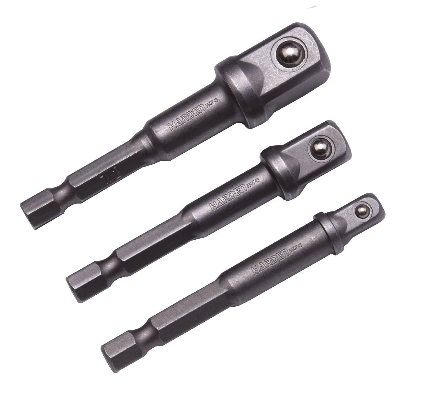 Set med 3st fyrkantstappar i hög kvalitet med 1/4” sexkantfäste. Innehåller 1/4”, 3/8” och 1/2”.