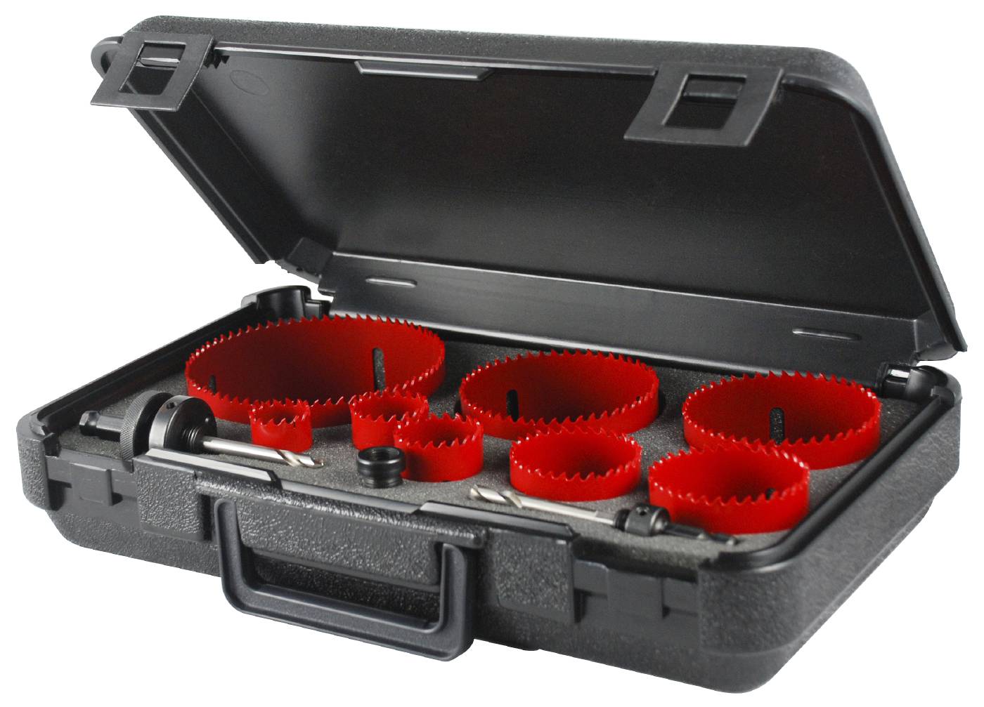 Satser där varje sats innehåller ett urval av hålsågar och hållare för sågning i trä, metall, rostfritt, mässing och aluminium.