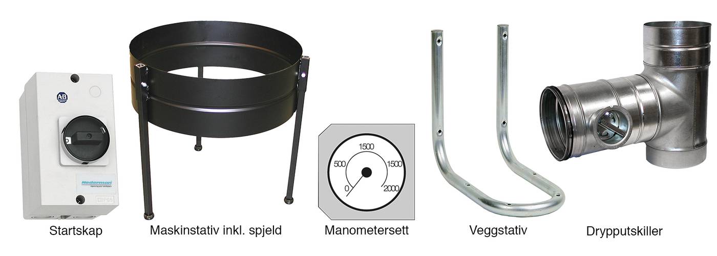 Passande fläktstarter för NOM-filter se angiven märkström på filtret.