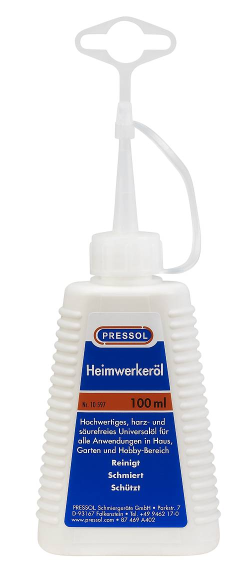 Hushållsolja. Harts- och syrafri. För smörjning av gångjärn, gängor etc i hemmet. Rostskyddande egenskaper. I hängbar vit polyetylenflaska med läcksäkert lock.