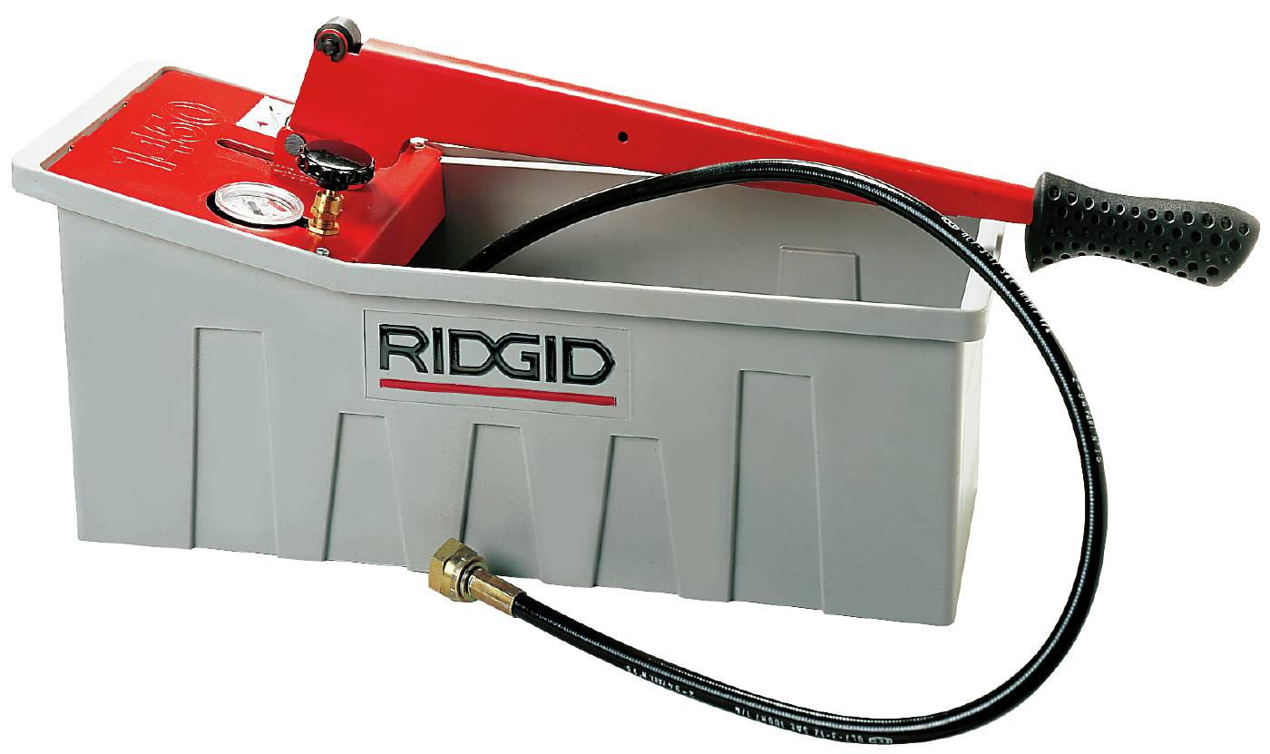 För provtryckning av alla typer av rörsystem innehållande vatten, emulsion eller olja. Med manometer och anslutningsslang. Behållare av plast.