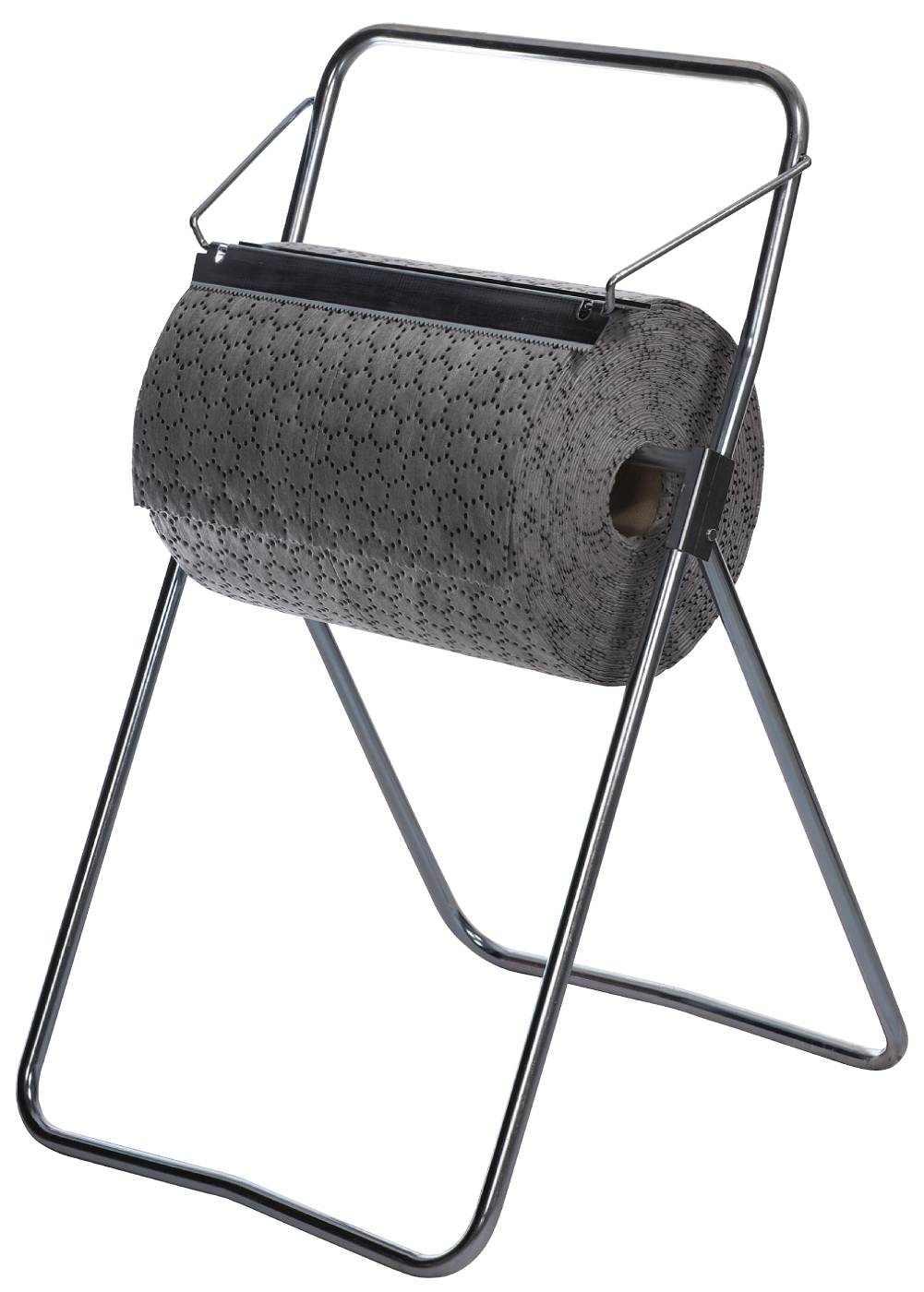Ett praktiskt golv- och väggställ med blankförzinkade rör som passar absorbering- och pappersrullar med en bredd på upp till 40 cm. Enkel montering. Levereras utan rulle.