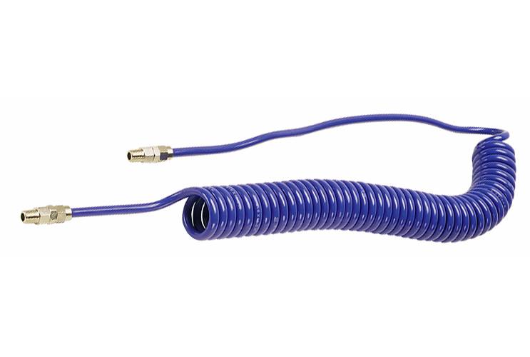 Spiralslang av oljebeständig polyuretan med adapter typ Stream-Line för maximal täthet. Tål mycket hårda påfrestningar och återgår alltid till sin ursprungsform. En böjlig slang som ej lämnar någon brottyta.