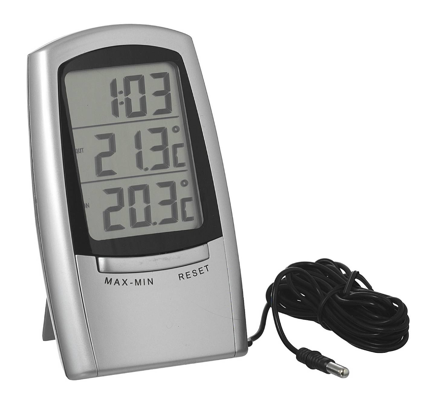 Med utfällbart bordsstativ och montering på vägg. Batteri medföljer ej.