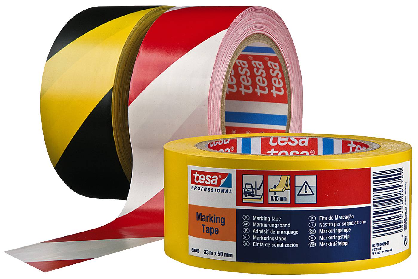 Permanent märkning av mobila eller stationära föremål. Denna tejp används till många olika ändamål där en tydlig märkning av föremål eller material är nödvändig som en säkerhetsåtgärd. De två mycket synliga färgkombinationerna är i överensstämmelse med gällande säkerhetsbestämmelser. God vidhäftning på olika ytor. Kan rivas av för hand. Styckförpackad i plastfolie.
