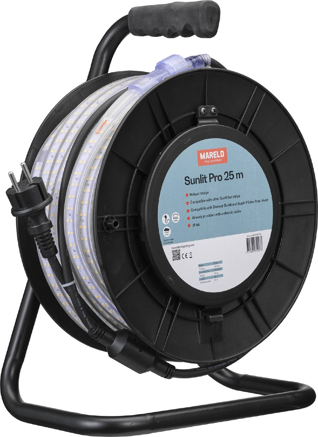 Lättanvänd och mycket hållbar slinga på vinda. Ger ett behagligt ljus som är skonsamt för ögonen. Ett bra komplement allmänbelysning för användare som arbetar temporärt på en plats. Enkel att rulla ut och lätt att rulla in när arbetsuppgiften är slutförd. Tar liten plats i bilen eller där man förvarar vindan. Antingen rullar man ut slingan och låter den ligga direkt på marken alternativt hänger man upp den i taket eller motsvarande. Går att använda både ute och inne. Möjlig att dimra med DIMMER SUNLIT. Levereras med elkabel. Skall rullas ut helt under användning.